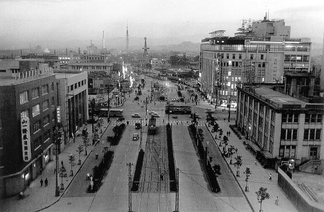 | 旧博多駅・1956年 (現)大博通り祇園付近 |