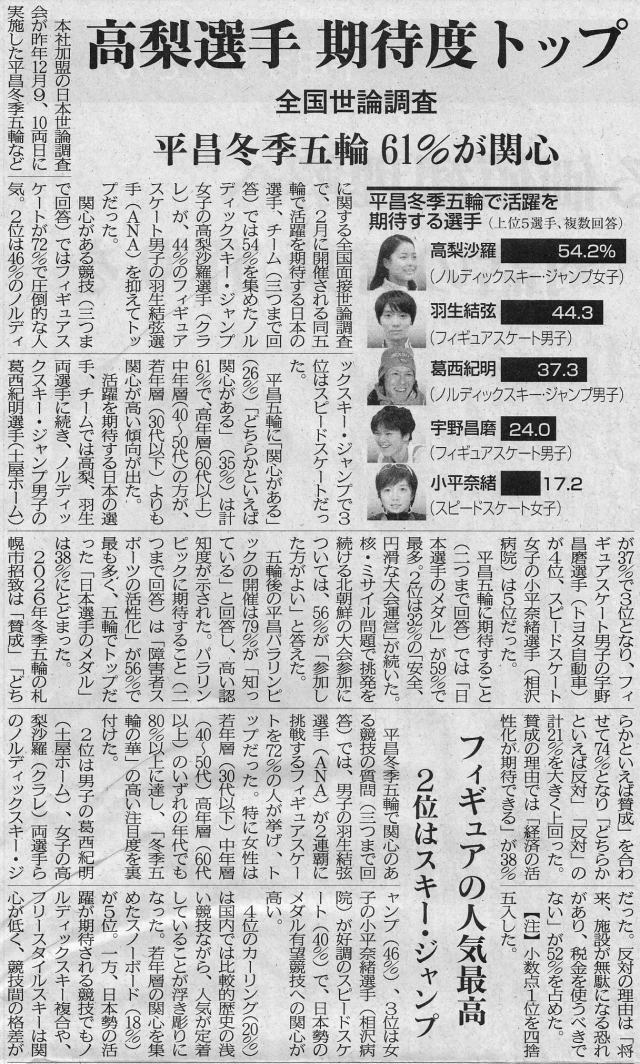 | 平昌五輪といえばヤハリ高梨は外せないか。 プレオリンピックの紙・読者期待度ナンバー1だった高梨。私見はともかくとして、 五輪で現在の実力は発揮し3位に入ったことで良い方向へ一息ついた感があった。 (それにしても、今回オリンピックのこの競技に関しては3位まで見事に今シーズンの実力どおりに収まった結果というものは非常にマレであった)。 54勝というのは時間の問題でもあったが、予想を遥かに上回った早さでもあったし、55勝も翌日の同地ということを差し引いてもこれまた予想外の早さだった。 今季最終2戦、常勝のルンビが不調、14/15シーズンW杯覇者・イラシュコが2位に入るなど、高梨の勝利も含めて異例づくしの最終盤であった。 |