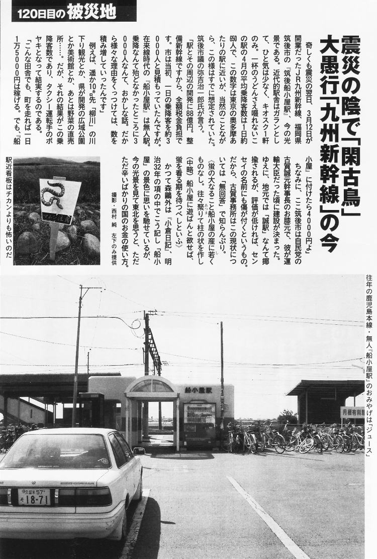 | 週刊文春 2010. 9. 9(この写真の答、つまり開業後の様子が同誌に掲載されたか否かは不知) | |
