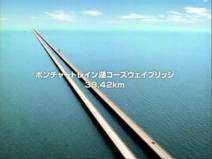 画面中央にかすかに見える、縦の細い直線が世界一長い橋・コーズウェイブリッジ