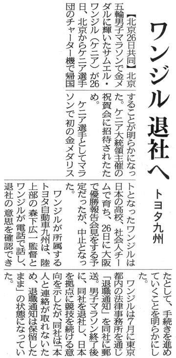 めまぐるしく情報が入ってくるが、結局のところ本国拠点で、日本は関係なしということに落着いたようである。 ワンジル本人或いは周囲の誰かが、北京までの調子の良さに浮かれすぎてなければ幸いだが。 いずれにしても、今年の九州一周駅伝、福岡は少なく見積もっても8分を余分に稼ぎ出さねばならない。 |