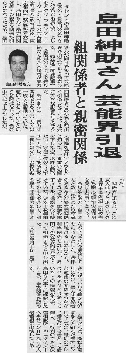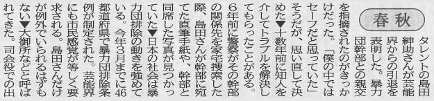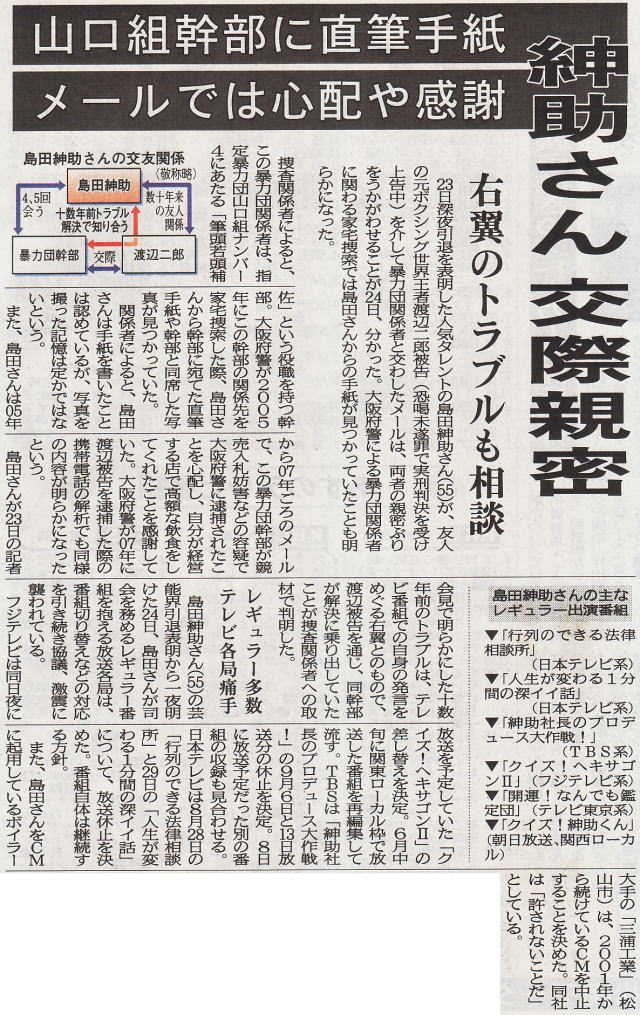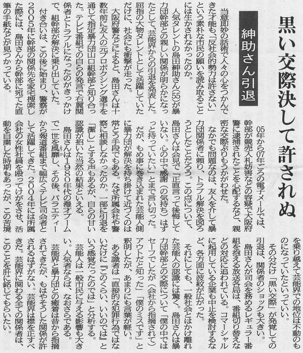 “快哉”がもっともこのニュースにふさわしい言葉であろうが、麻生千晶ははたして紳助が「引退」という、つまり力を及ぼしえない立場になる前からここで述べているような内容を公にしてきていたのであろうか?