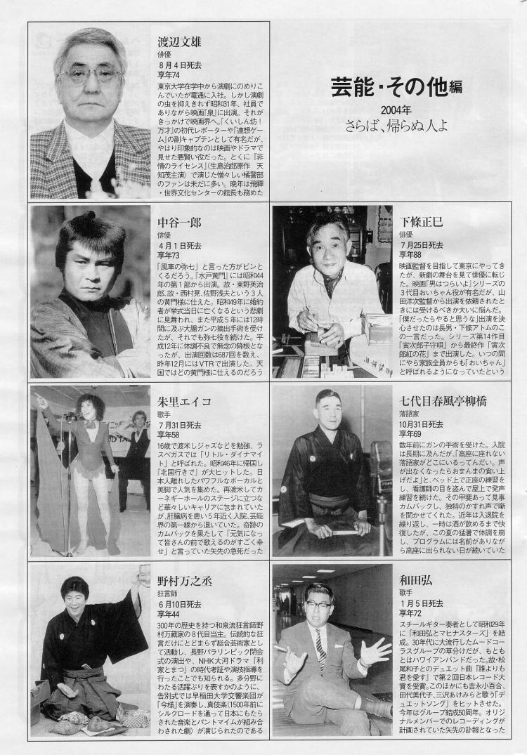> 週刊文春2004.12.23/特別企画 2004年 さらば、帰らぬ人よ中、