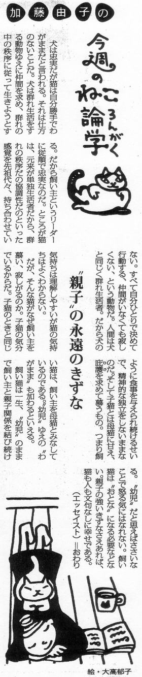 ただし、私には猫に申し訳ない気持ちになるとか、猫に生まれ変わりたいとかの願いは一切ないが。 |