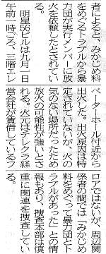 今回のビル火災では、出火元のエレベーターホールで、ガスメーターがなぜガス管からはずれてボックスの床に落ちていたかが大きな謎だが、その謎を解く仮説が浮上した。