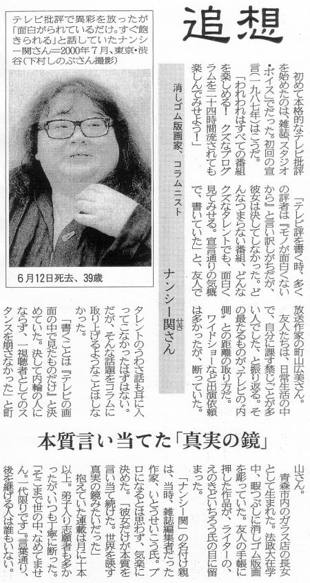 番組の打ち切りから時を経ず「消灯時間」も消灯した。 (2002.6) ナンシー関・ホームページ http://www.bonken.co.jp |