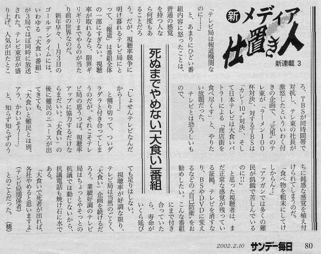 本記事最後の言葉通り、死人(中学生だったか?)が出て番組は中止となった。 |