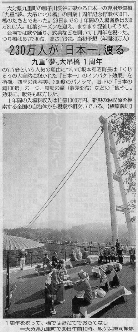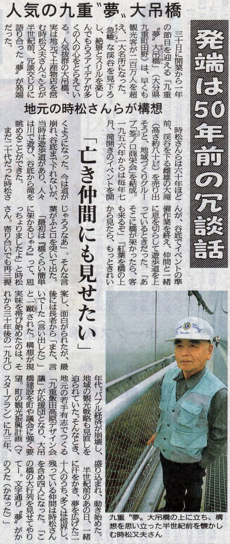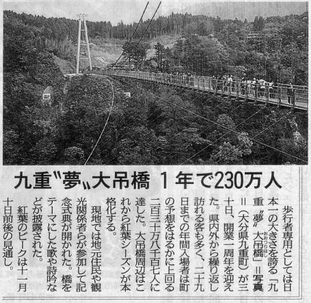 | 九重”夢”大吊橋に関しては、掲載が非常に多かった。(それも特に西日本新聞は。) | |||||||||