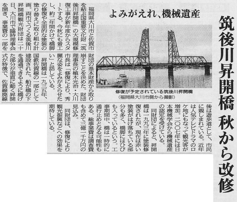 | 筑後川昇開橋 西日本新聞2001. 1.21 | △ページトップ |