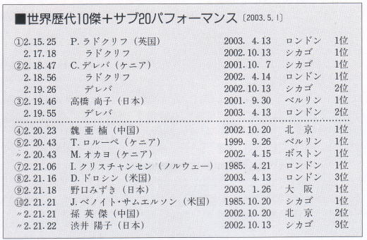 03.4.22記述 P.ラドクリフ世界新記録樹立(2) |