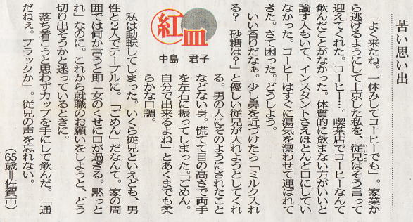 西日本新聞? 1992?.*.*「おんなのエッセイ」の受賞作(入選?/特選・入選・佳作)