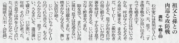 西日本・毎日、2紙の酷似した投稿欄掲載文を並べてみて、どうしても“アジのある”点で前者に軍配を挙げざるを得ないのは地元贔屓だけのセイか?