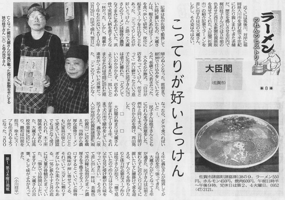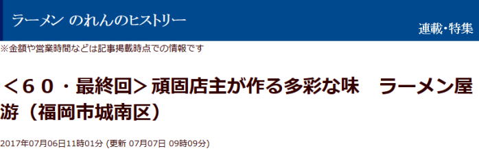 | 近頃あまり気にしていなかったら「ラーメン・のれんのヒストリー」はいつの間にか終っていた。 下は、最終回の WEB版 を借用した。 |