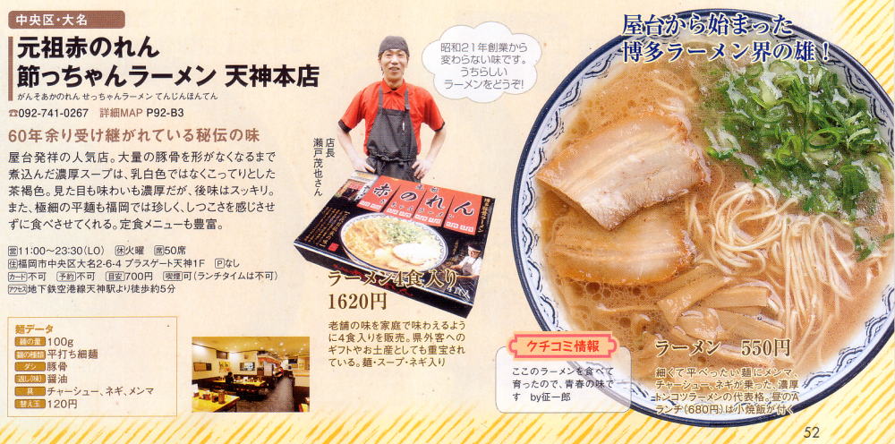 安全食堂 博多らーめん Shin-Shin 天神店 博多一双 博多駅東本店 長浜ラーメン みっちゃん 川端どさんこ 長浜ラーメン 名島亭 支那そば 月や 博多店 麺道 はなもこし 長浜ラーメン 力 鈴木商店 |