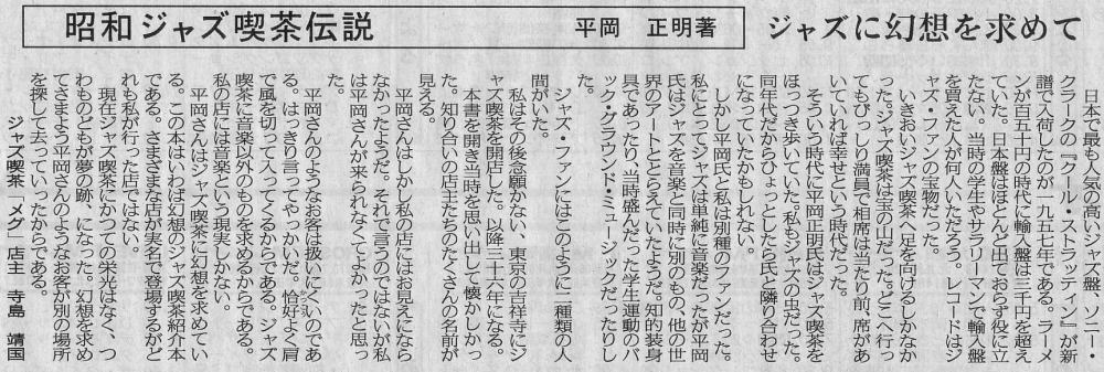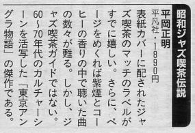 本書は未読であるので、平岡正明・寺島靖国、どちらに寄っているのか未だ分らないでいる。本書に取上げられているジャズ喫茶を眺めれば自ずからどちら寄りだったかが見えてくると思う。