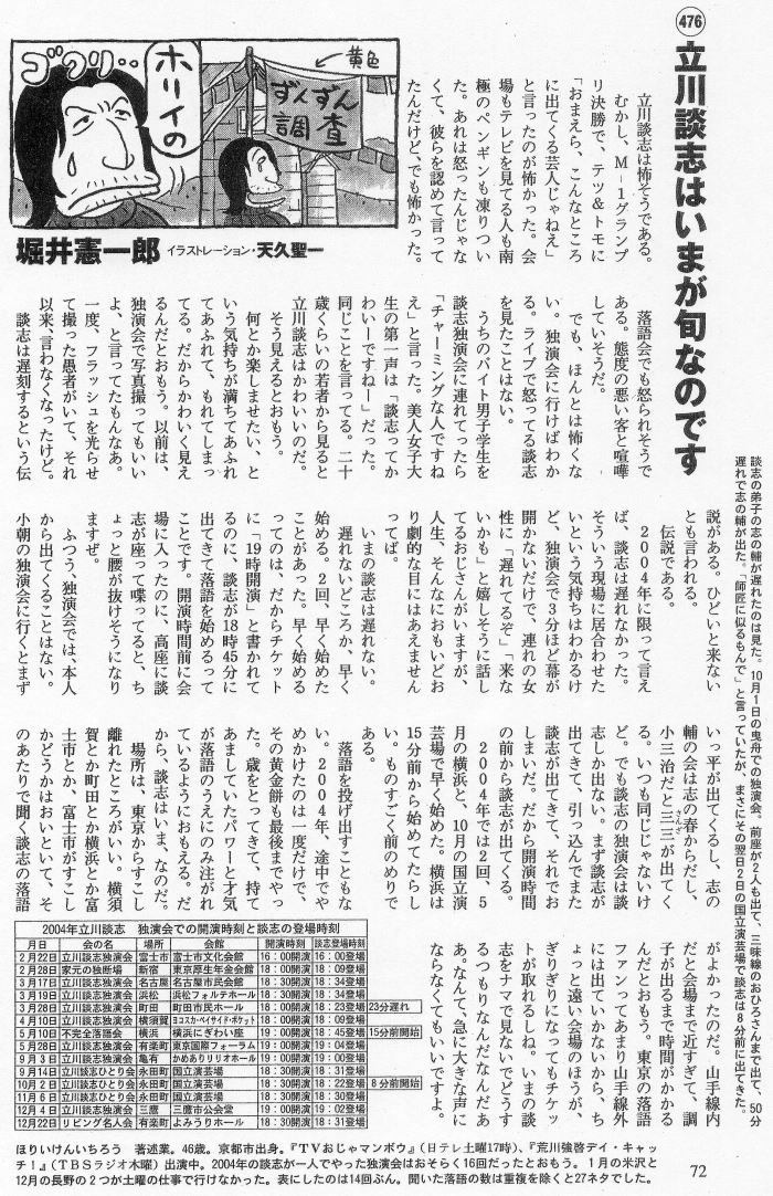 | 2004年立川談志 独演会での開演時刻と談志の登場時刻 |