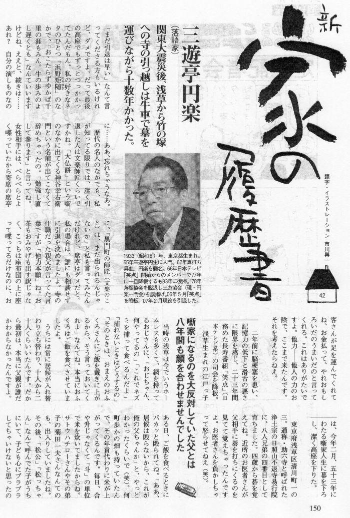 円楽という噺家、地(じ)の喋りで、「あのー」「そのー」と言うのが如何にも“素(す)”で、円生や志ん生(これは極めつけ、「うー」と言っただけで笑えるほど)のように その言葉から噺になりきっていないところが、とても気になる。