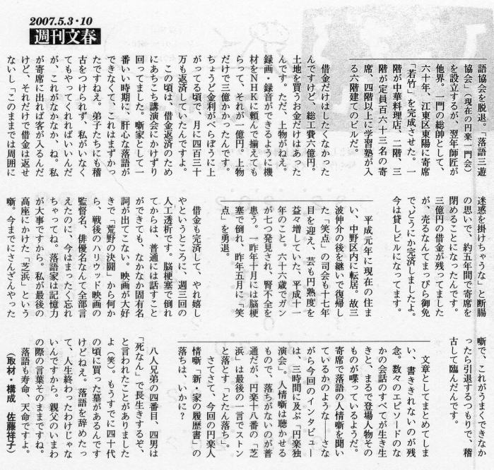 週刊文春 2007. 5. 3・10