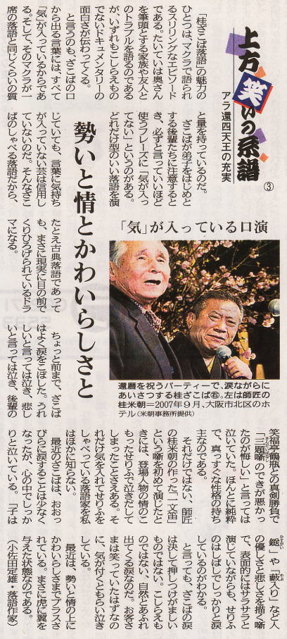 じゃないが談志は嫌い。それを取入れるざこばも嫌(いや)。ざこばの面白さについては記事のとおり納得。