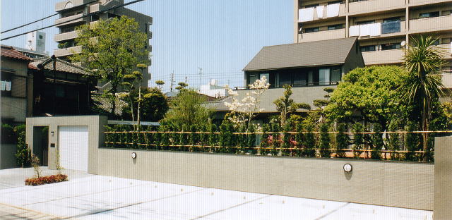 造園工事との兼ね合いで撮影時期を逸し、アピールどころのエントランス上部のバルコン、木々の間に隠れてしまったウッドデッキ付メインの生活空間(LDK)等、はなはだ意を尽くせないショットとなってしまった。